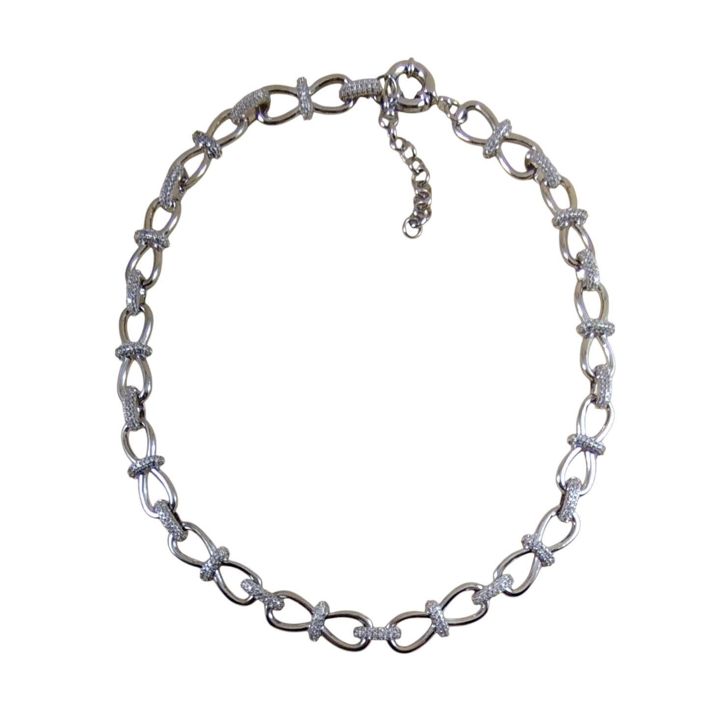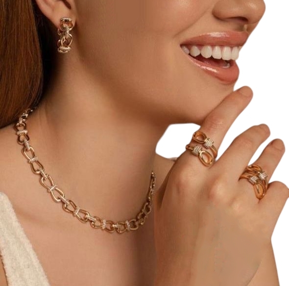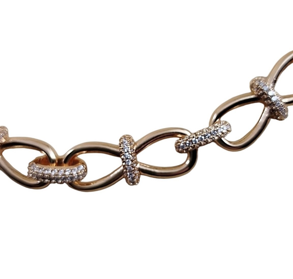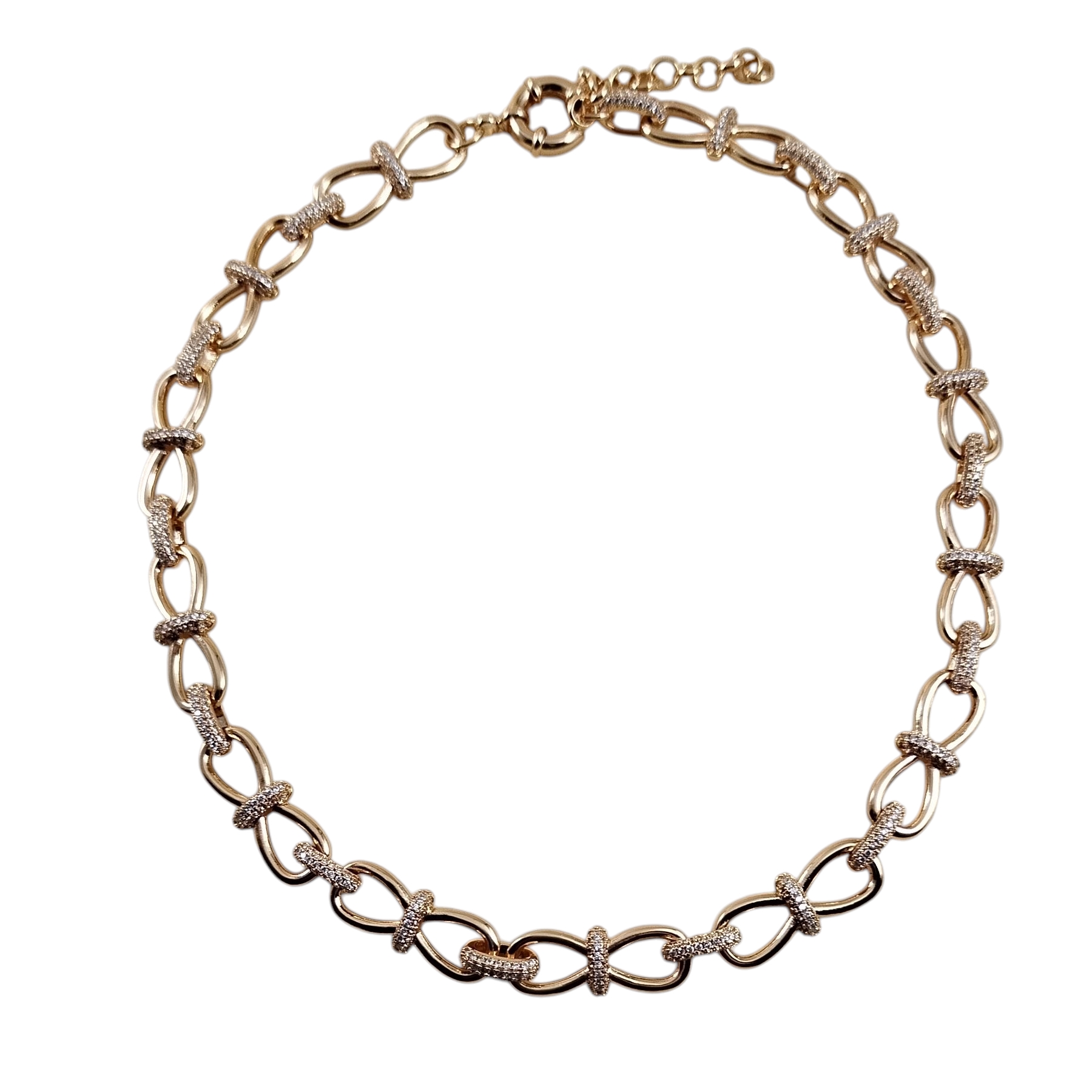 Releitura de um clássico da joalheria, o colar de elos Chantal é elegância e brilho em cada detalhe: este colar é formado por elos modernos e sofisticados, delicadamente cravejados com zircônias de intenso brilho. Uma semijóia que combina design contemporâneo e sofisticação atemporal, perfeita para transformar qualquer look em uma produção de impacto.
