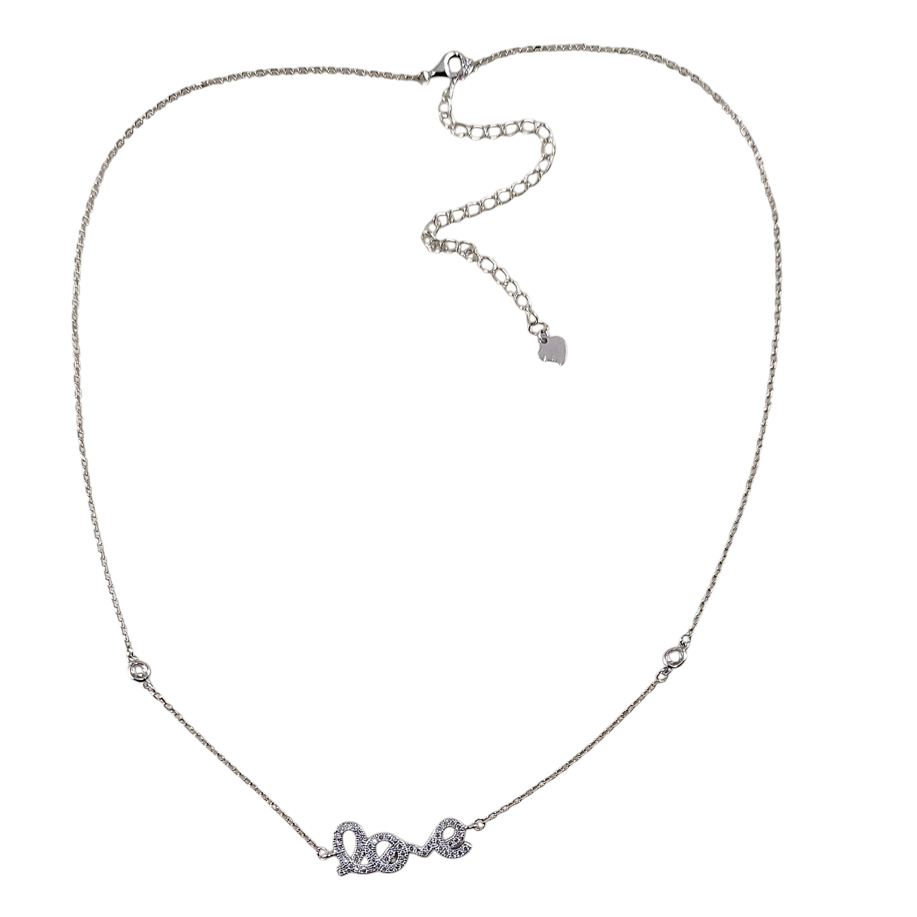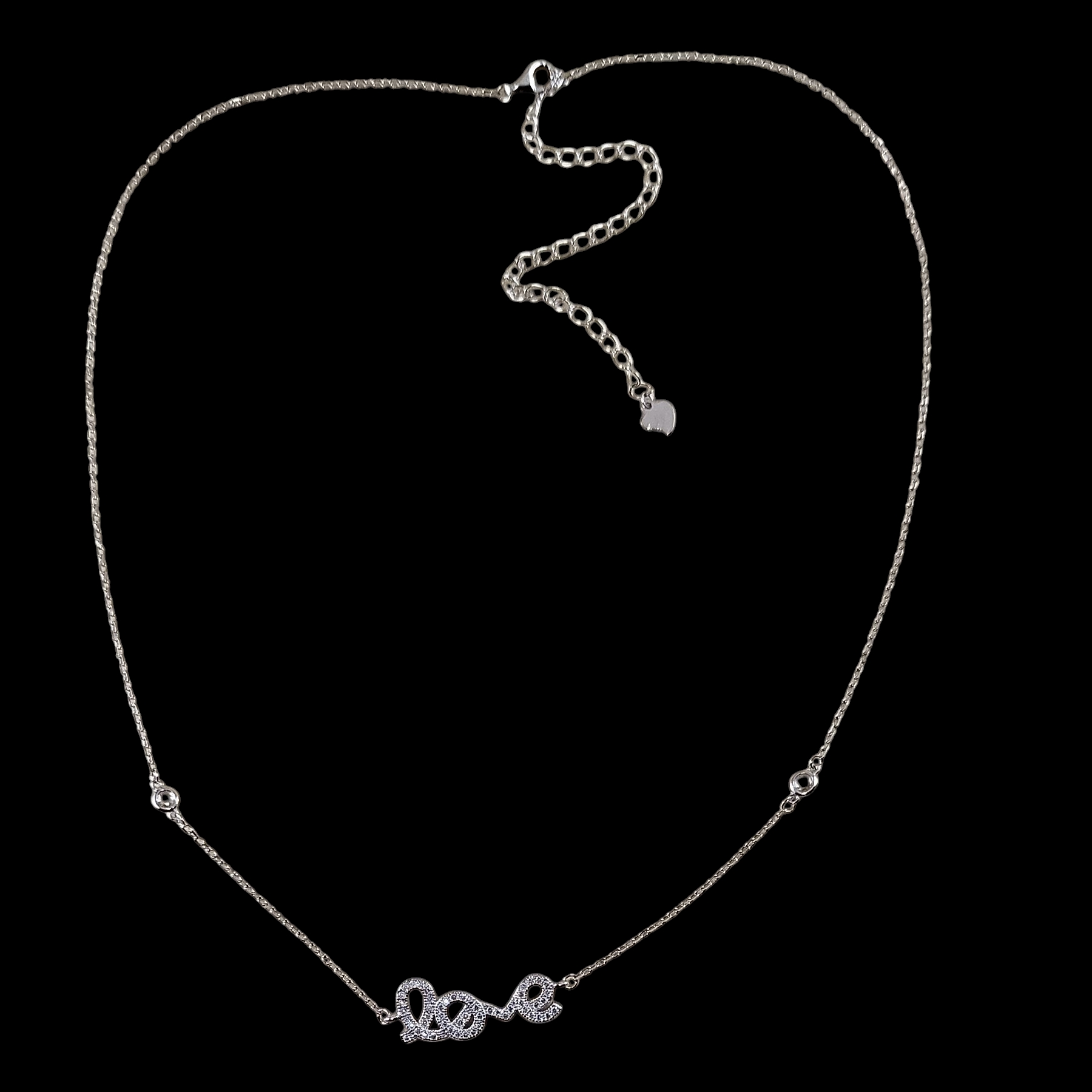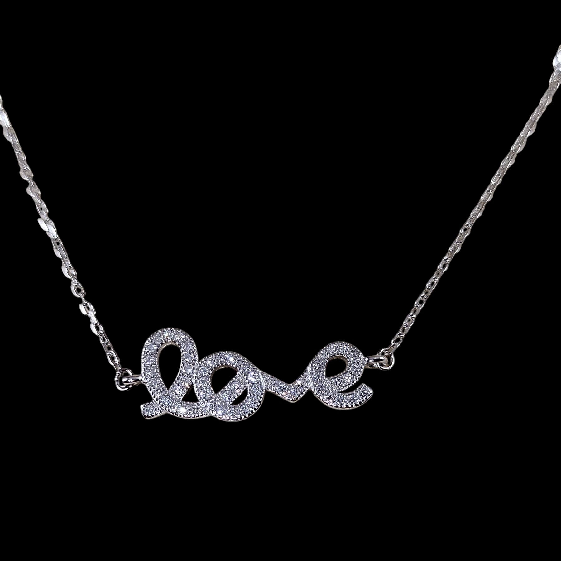 Delicadamente elaborado em Prata 925 pura, este colar traz a palavra “love” escrita em um design elegante e moderno, totalmente cravejada de Zircônias brilhantes, que refletem a luz com intensidade única.