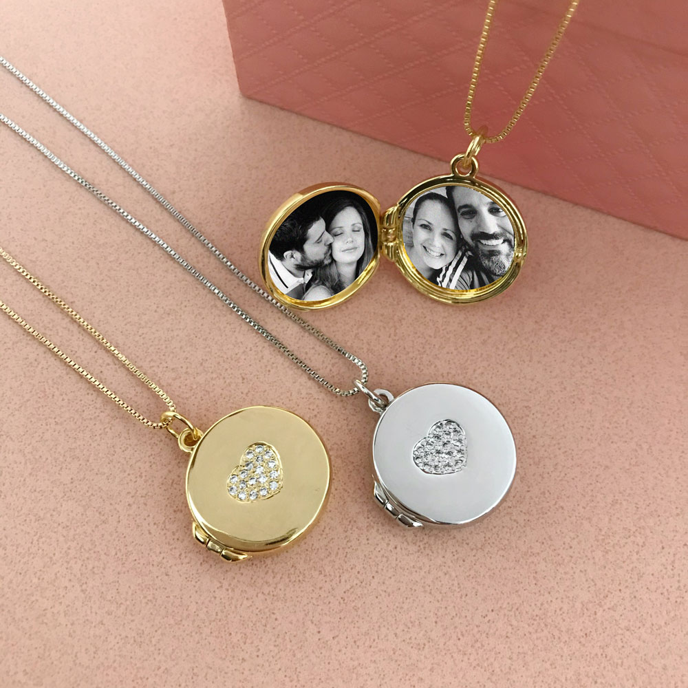 Um tesouro de sentimentos em forma de joia. Este delicado relicário redondo banhado a ouro 18k é puro encanto e significado. Com um coração cravejado em microzircônias cintilantes, ele guarda dentro de si espaço para duas fotos especiais, permitindo carregar sempre perto do peito quem você mais ama.